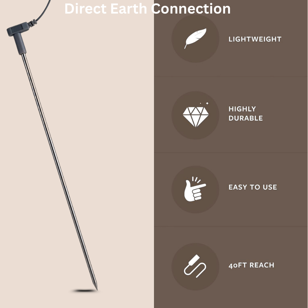 - The Grounding Sourceโ„ข Grounding Rod works by creating a direct path to the Earthโ€™s natural energy. Simply place the stainless steel stake into the soil outside, run the 40ft conductive cord indoors, and connect it to your grounding product. This safe setup bypasses outlets and ensures continuous grounding, no matter your homeโ€™s wiring.